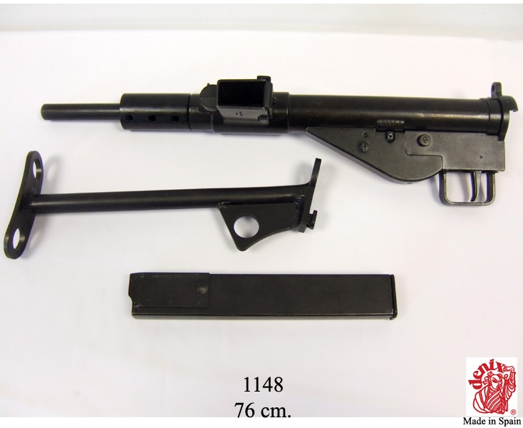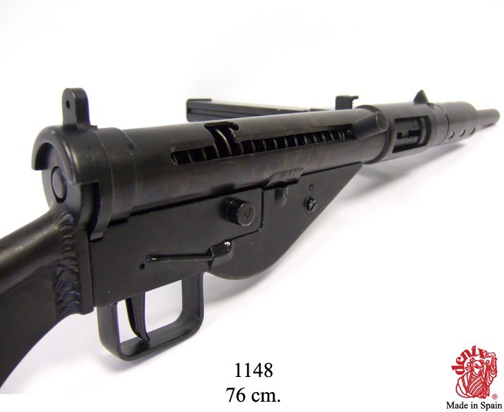 Макет автомат Sten Mark II от испанского бренда сувенирных оружейных макетов изготовлен с вниманием к каждой детали, и внешне не отличается от своего боевого прототипа. Имитация зарядки и работы ударно-спускового механизма придает макету еще большую достоверность. Для производства этого образца был использован специальный металлический сплав, достаточно прочный и долговечный, учитывая особенности использования данного экземпляра. Вес макета идентичен боевому аналогу, и составляет 2,09 кг, длина оружия - 76 см. Такой макет не предназначен для стрельбы, и купить его может каждый желающий.
