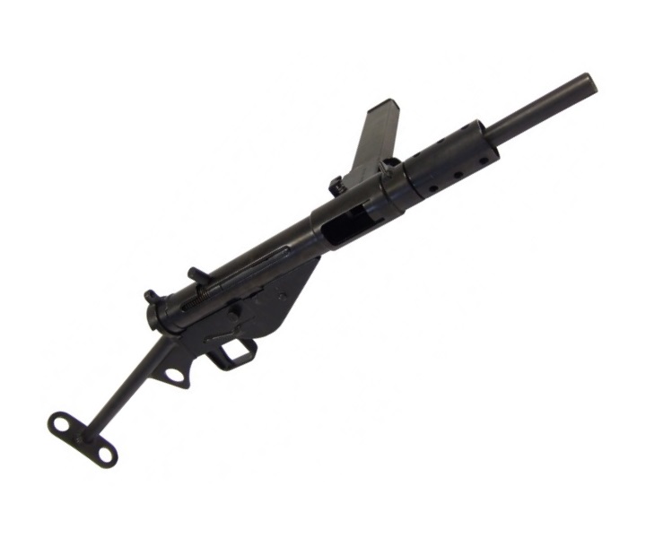 Макет автомат Sten Mark II – это массогабаритная копия британского автоматического оружия времен Второй мировой. В конце 30-х – начале 40-х годов прошлого столетия английская армия испытывала острый дефицит автоматического оружия, и пехотинцы зачастую проходили обучение с макетами в руках. В этот период на вооружении армии состояли пистолет-пулемет Ланчестер и пистолет-пулемет Томпсона, поставляемый американцами. Армия нуждалась в дешевом и технологически несложном оружии, массовый выпуск которого можно было бы наладить достаточно быстро. Так был создан автоматический карабин, являвшийся упрощенной модификацией германского МР28. Конструкция этой модели включала много штампованных элементов и трубчатых компонентов, сложными в изготовлении были только ствол и затворная часть. Первый образец этой модификации был продемонстрирован в начале 1941 года. Первая партия Стенов составляла 100 тысяч единиц.