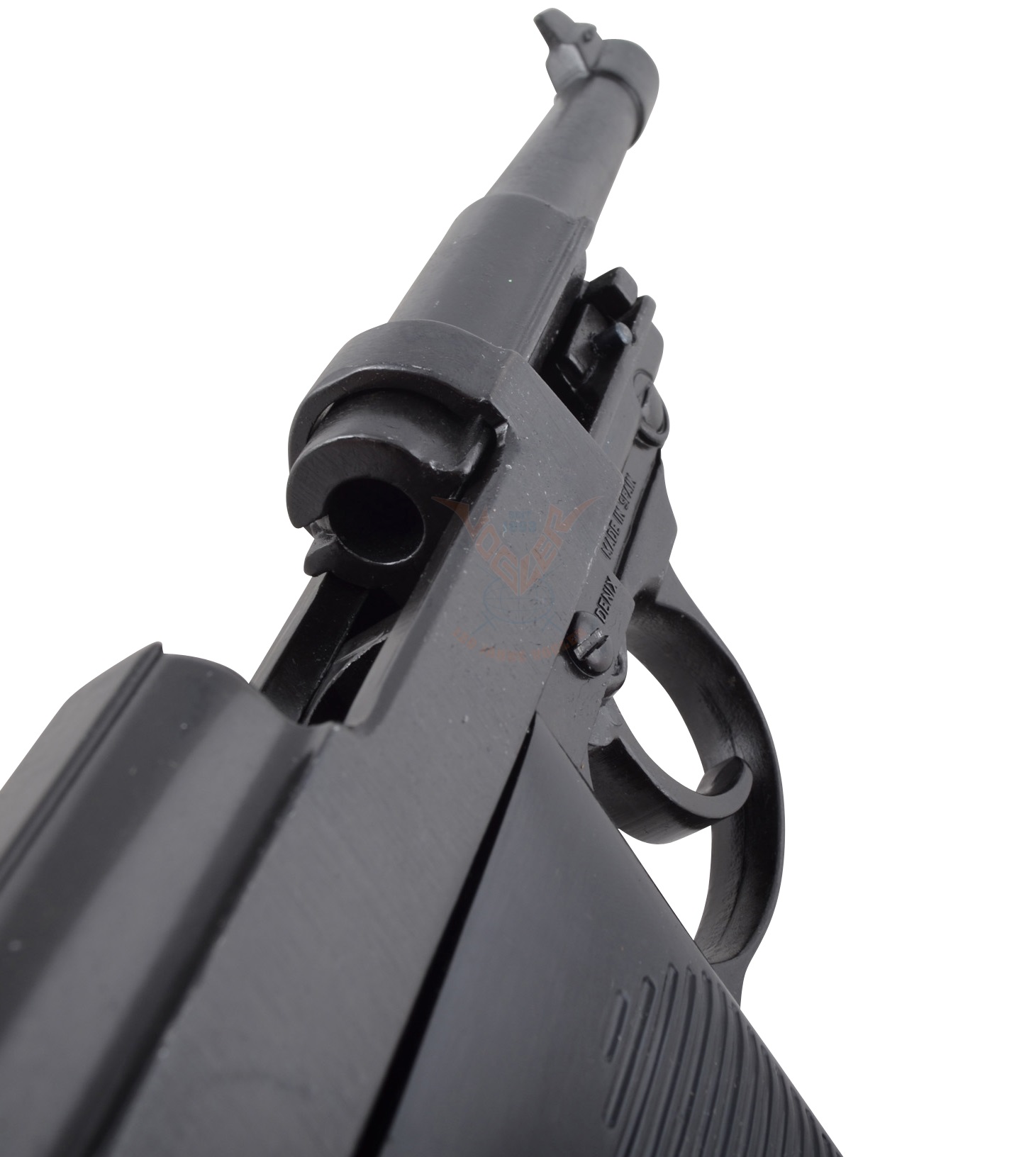 Макет пистолета Walther P.38 от испанской компании декоративно-сувенирного оружия Denix является реалистичной копией, изготовленной на основе настоящего боевого оружия времен Второй мировой. Пистолет изготовлен из особого металлического сплава, идеально подходящего для такого типа продукции. Как и оригинал, он имеет вес 0,71 кг и длину в 24 см. Затворная рама подвижна, взведение и спуск функционируют, как и в оригинальной модели. На рукоятке имеется накладка из пластика. Макет легендарного оружия Великой Отечественной войны выглядит реалистично и очень грозно, приятно лежит в руке и дает ощущение обладания настоящим германским пистолетом.