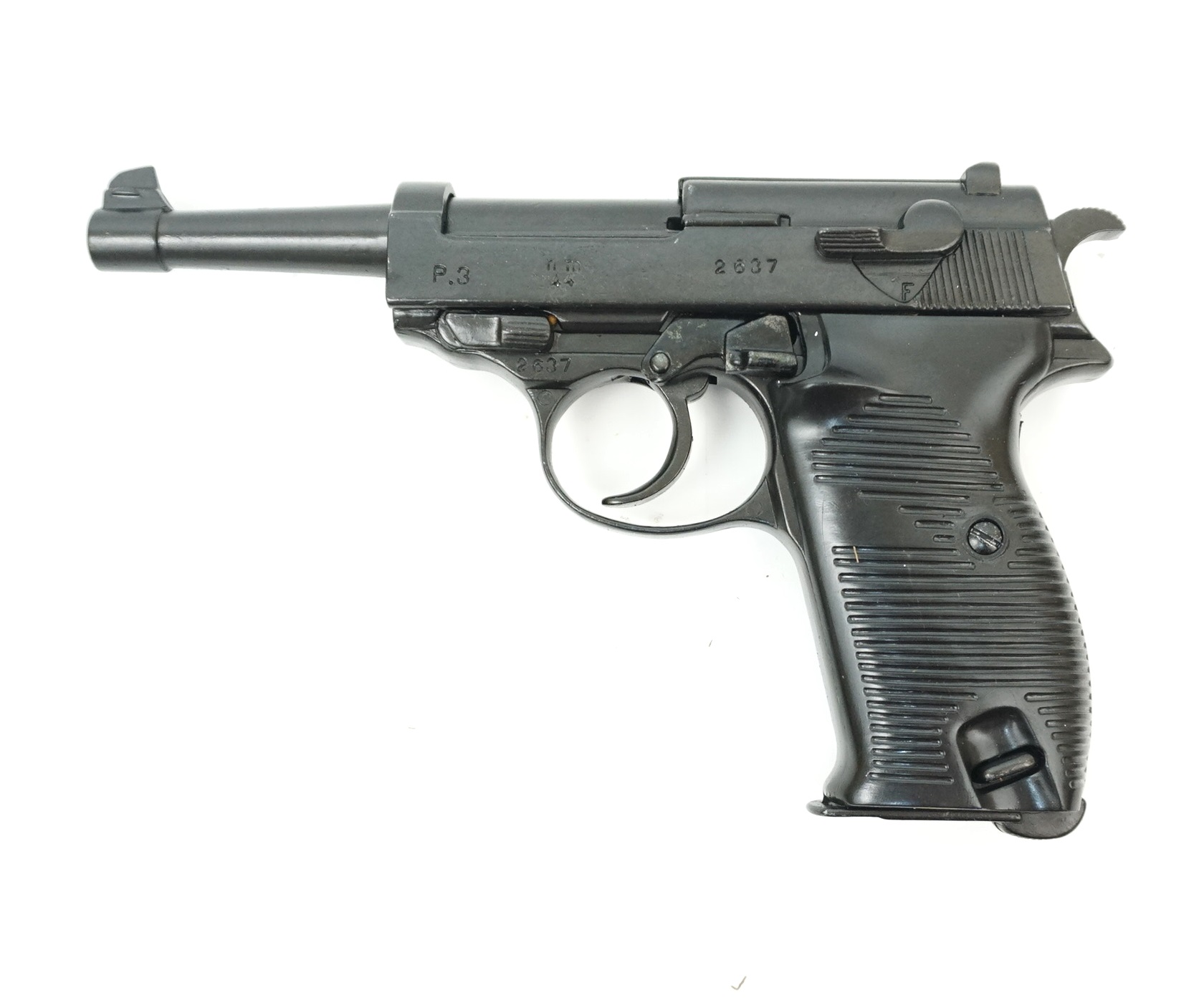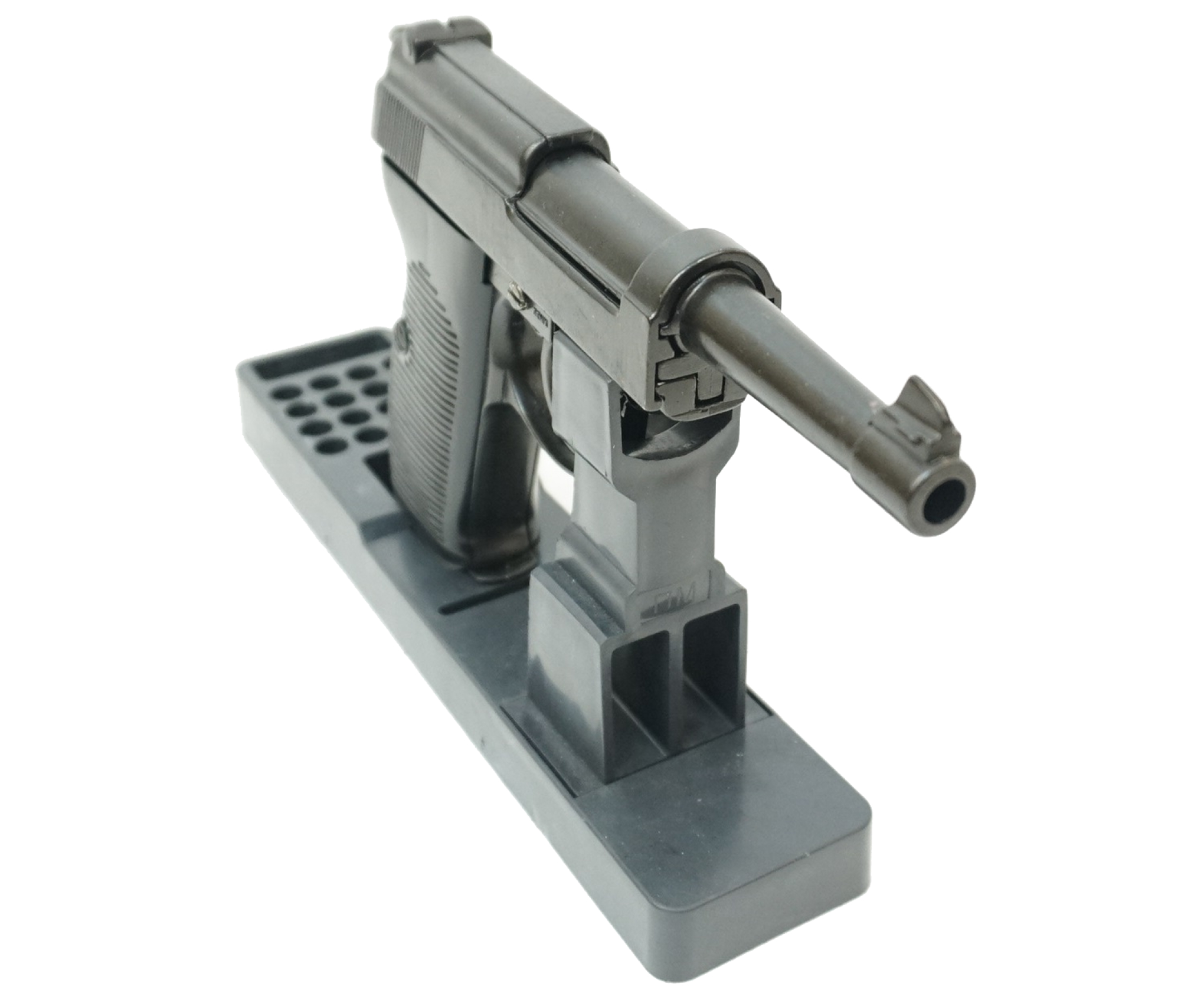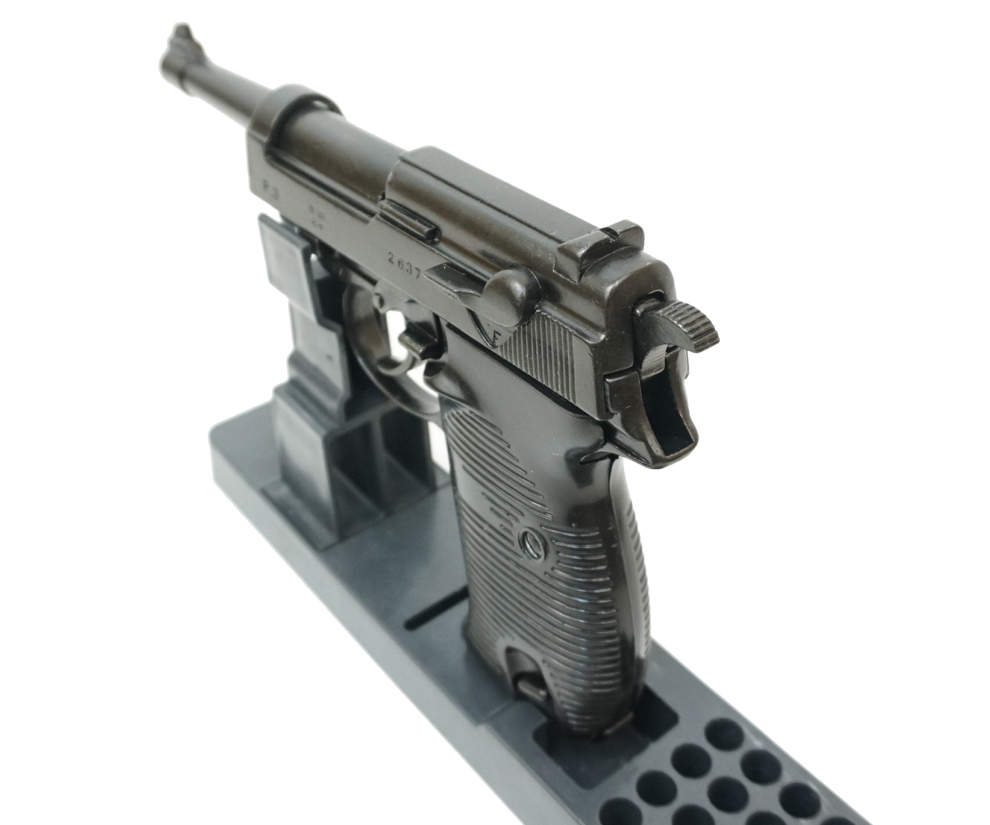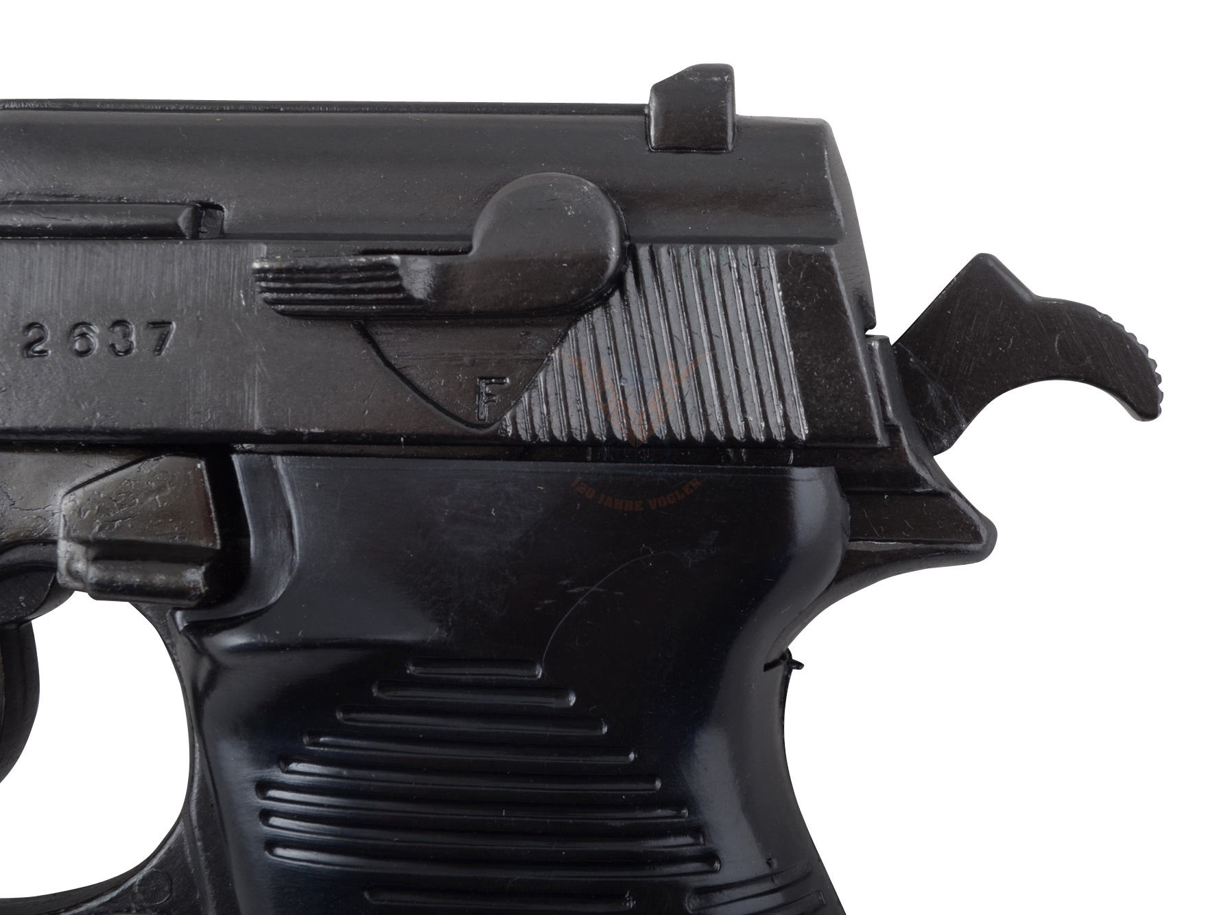 Макет пистолет Вальтер Р.38 – это выполненная в полном масштабе копия самозарядного стрелкового оружия Whalter калибра 9 мм, которое с 1938 года было на вооружении вооруженных сил Третьего рейха. Базой этого пистолета, ставшего основой для целого поколения германских пистолетов, стало новое решение, состоящее в изменении системы запирания у ствола – использовалась защелка, способная вращаться по вертикали. Постепенно такой пистолет заменил в войсках Люгер, и стал самым распространенным оружием немецкой армии.